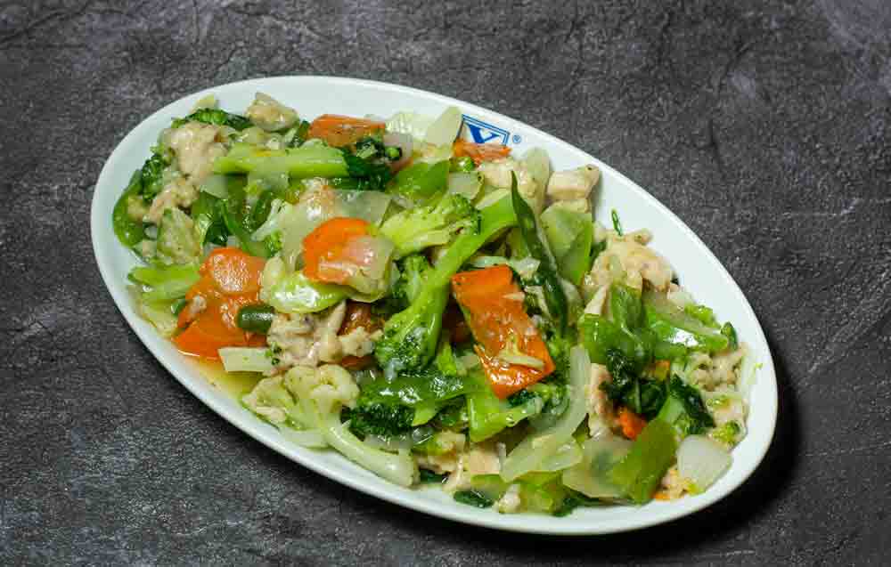 Seasonal mixed vegetable cooked with chicken slices & prawn